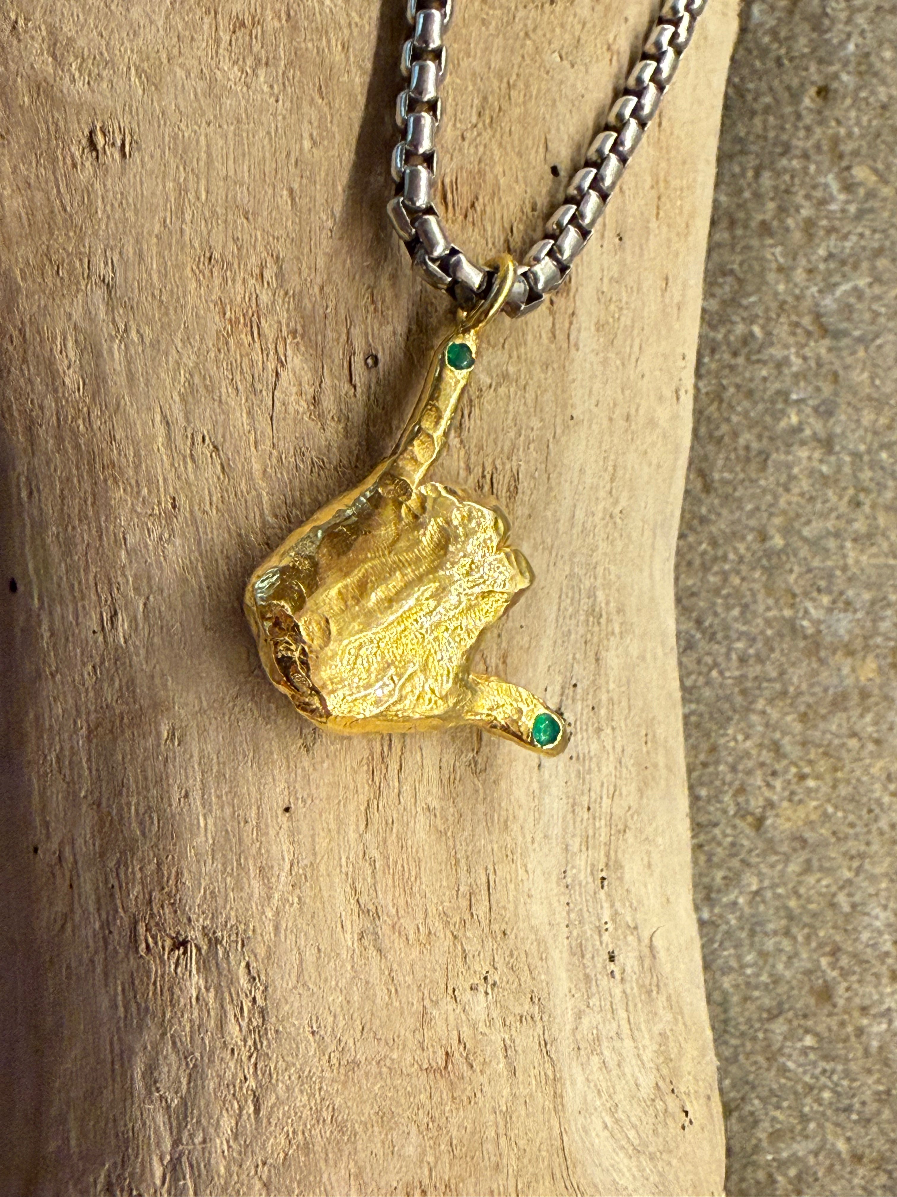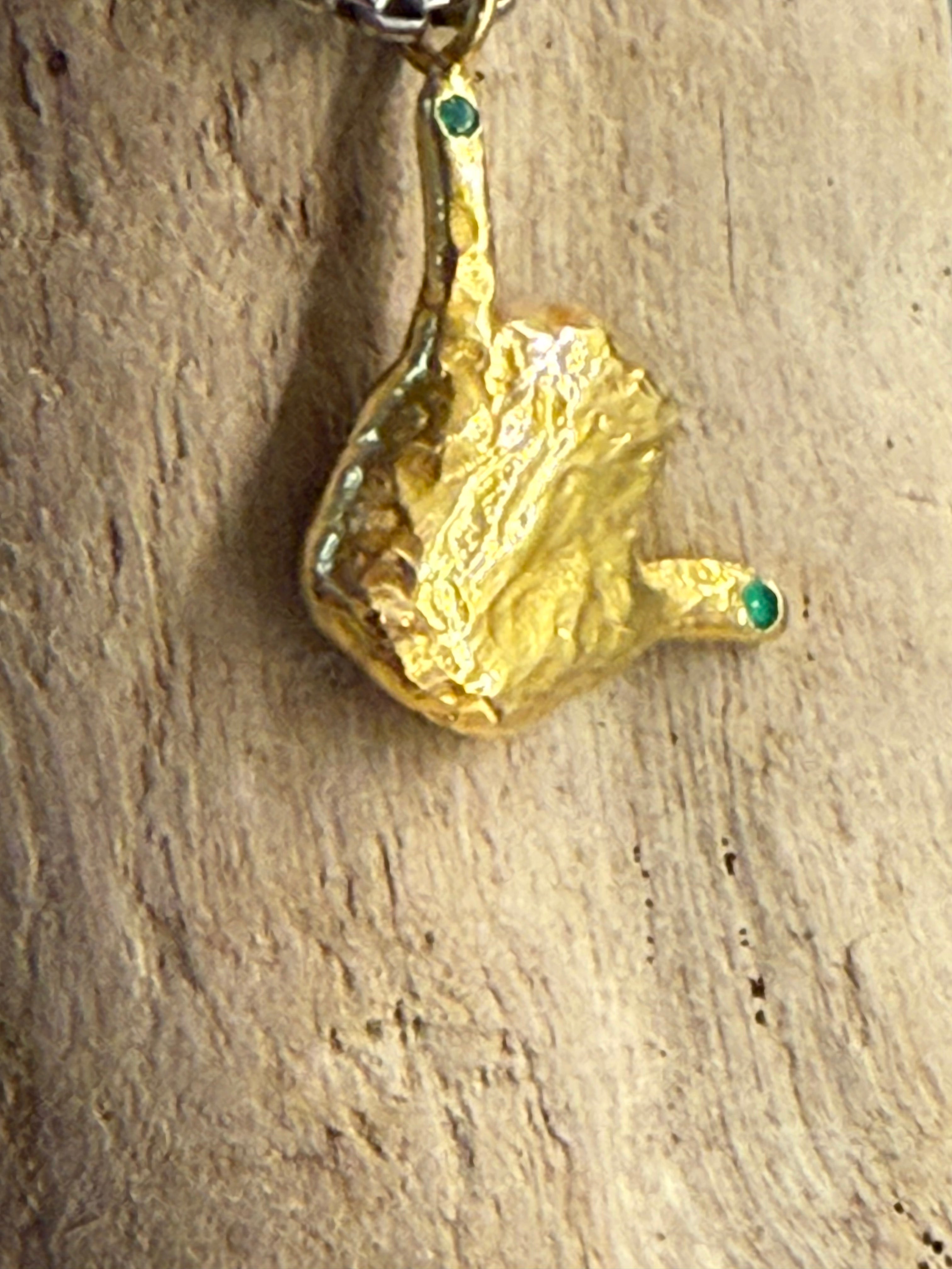 18k gold plated & sterling silver w/ Colombian emerald, Pura Vida Chai, on 70cm chain